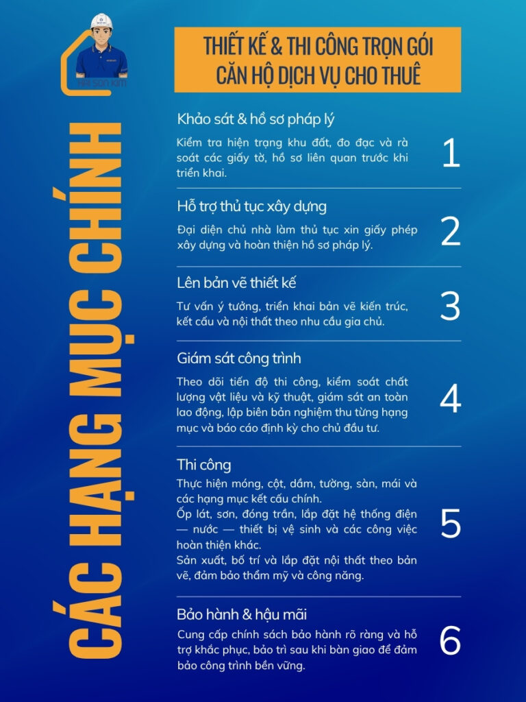 Các hạng mục công việc chính khi sử dụng dịch vụ thiết kế và thi công CHDV tại Xaydungphunguyen.com